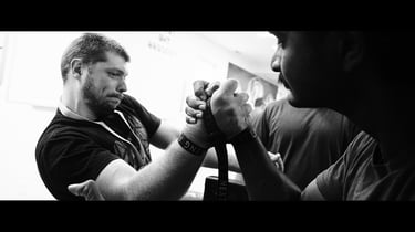 HELPING EACH OTHER GET GOOD AT ARMWRESTLING, AND HAVING FUN DOING IT.